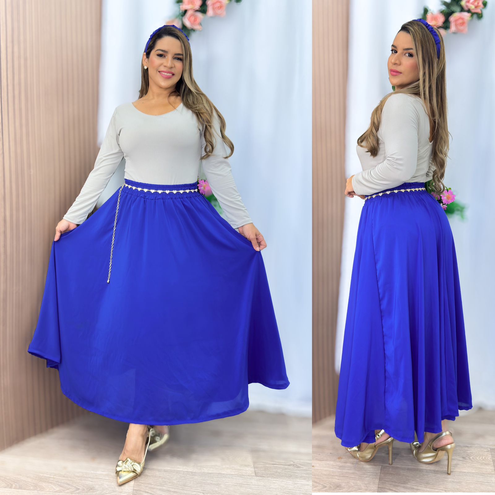 Descubra a beleza e a versatilidade das nossas saias godê e evasê, pensadas especialmente para quem valoriza a moda evangélica com estilo moderno e atemporal. Confeccionadas em tecidos nobres como crepe de seda e devorê, essas peças oferecem um caimento impecável e um toque suave que valoriza seu visual em qualquer evento.